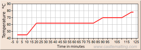 - Πολτοποιήστε σε 80 λίτρα νερού στους 45°C
