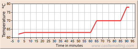 Begin bij 20°C verhoog de temperatuur naar 22°C, laat de diacetyl 24 uur rusten op het eind van de gisting voor verwijdering van de gist.
