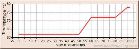 -Затерти солод при 62°C, настоювати 50 хвилин