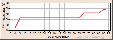 -Затерти солод у 80 літрах води (45°C) -Настоювати при 63°C 60 хвилин -Настоювати при 72°C 15 хвилин -Настоювати при 78°C 2 хвилини