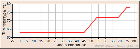 Графік - температура затирання (температура °C , час в хвилинах)