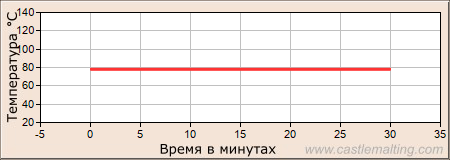 Пауза 30 мин при температуре 78°C. Далее отфильтровать сусло от дробины. Промывную воду подавать с температурой 78°C.