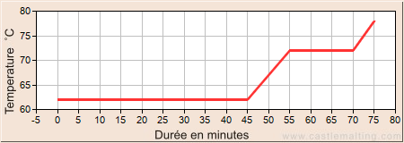 Empâter dans 80 litres d’eau à 66°C, ajuster le pH de la maîche à 5.4