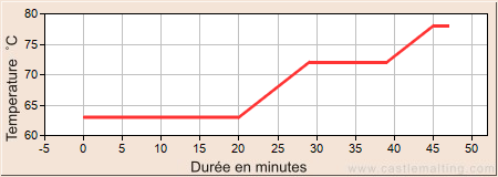 Empâter à 63 °C pendant 20 minutes, augmenter la température à 72 °C et laisser reposer durant 10 minutes, augmenter la température à 78 °C et laisser reposer durant 2 minutes.