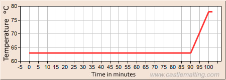 -Aggiungere 32.5 kg di malto in 75 litri di acqua a 63oC