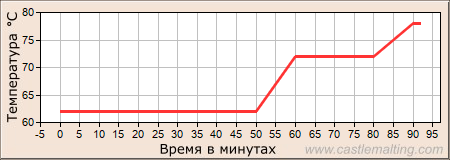 Затереть солод при 62°C (pH 5.4), настаивать 45 минут