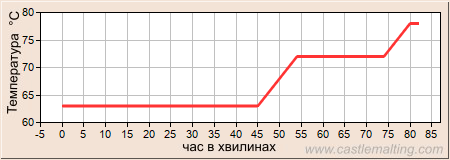 Графік - температура затирання (температура °C , час в хвилинах)