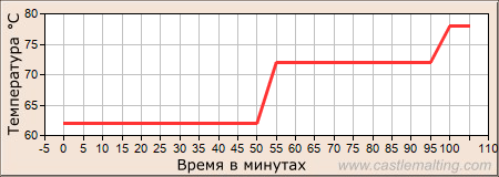 Затереть солод при 62°С в течение 45 минут